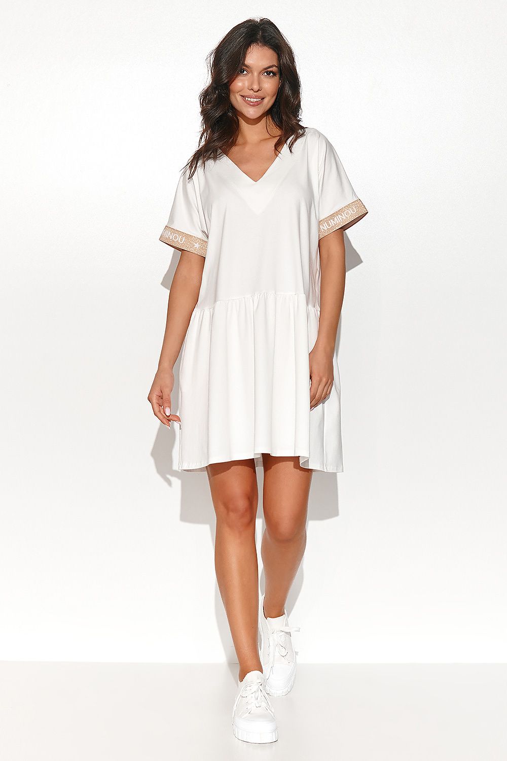يتميز هذا الفستان بتصميم مريح، وهو الخيار الأمثل لأي امرأة تحب الراحة والأناقة. إنه مصنوع من نسيج سويت شيرت خفيف الوزن مما يمنحه ملاءمة مريحة ومظهرًا عصريًا ومريحًا. يتميز بأكمام قصيرة مع حواف مزخرفة وفتحة رقبة على شكل قلب تبرز جمال رقبتك وتضيف لمسة من الأنوثة. بفضل طوله القصير، سوف تتمكن من التحرك بحرية كبيرة في الأيام الحارة. يضفي القطع خفة على التصميم بأكمله. هذا الفستان مثالي للعديد من المناسبات، سواء للارتداء اليومي أو للخروجات الأكثر أناقة. يمكنك تنسيقها مع إكسسوارات عصرية للحصول على مظهر فريد يجعلك تبرزين. إنه خيار ممتاز للنساء اللواتي يرغبن في الحصول على مظهر أنيق مع الشعور بالراحة.