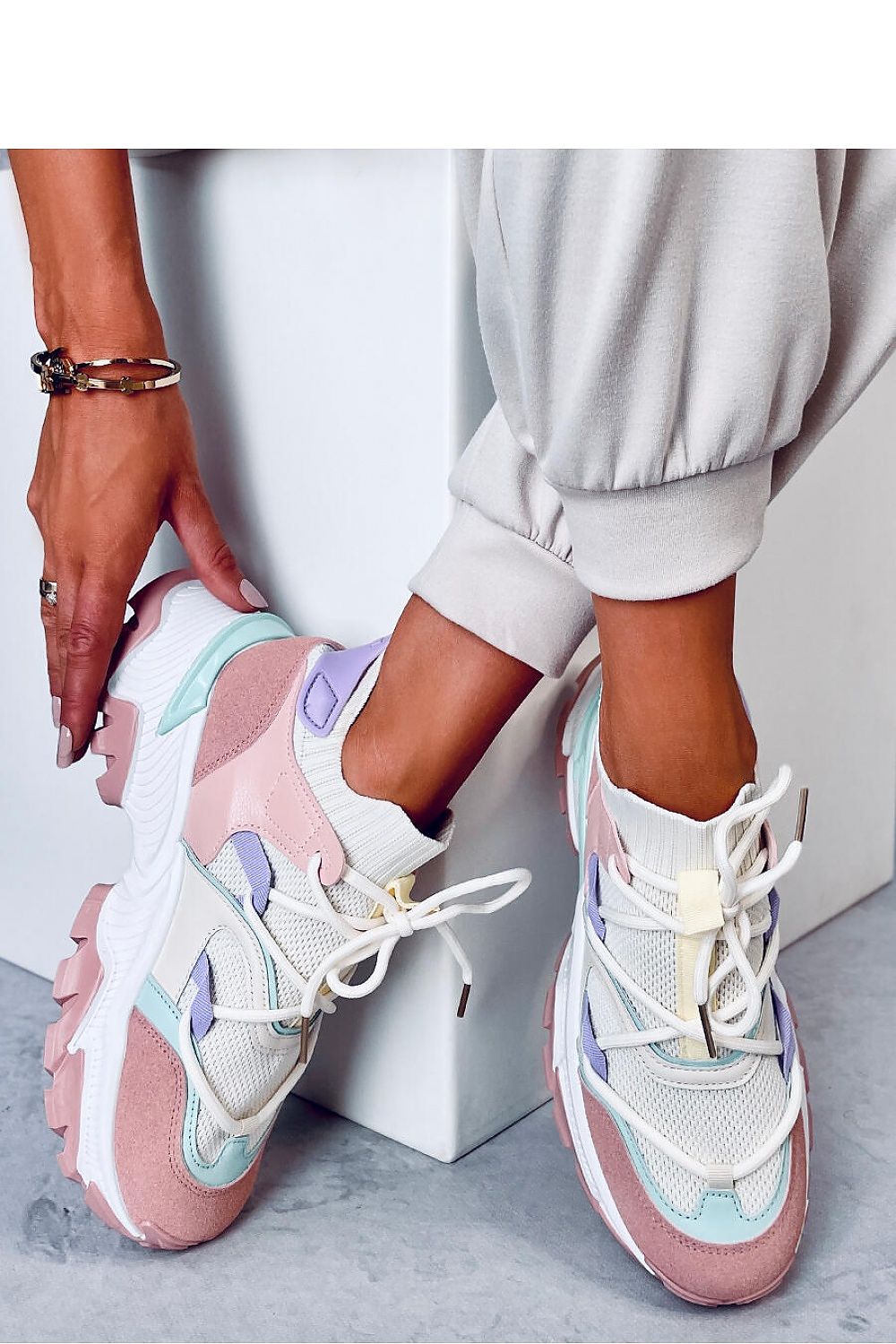Women's sneakers with a 6.5 cm wedge heel. This crazy model stands out with its unique color combination on a high designer sole. Impossible to miss, right? : ) The interior is lined with fabric. Outer material? eco-leather + fabric + eco-suede.