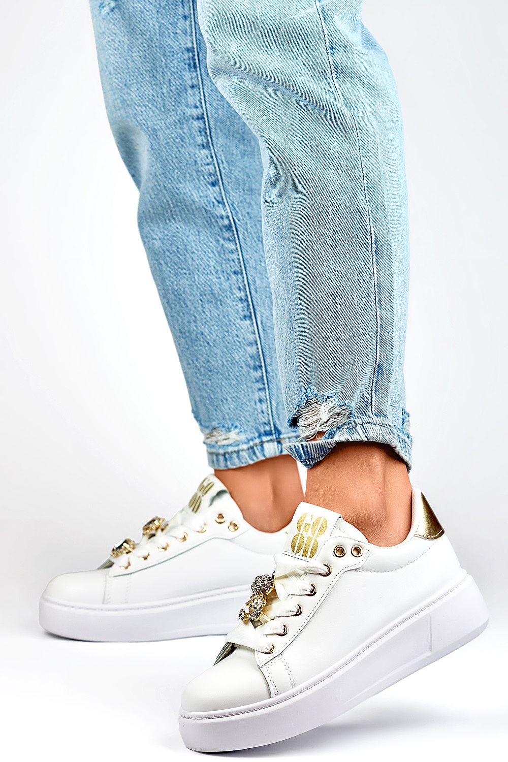 These white sneakers are the perfect combination of style and functionality, ideal for active women who want shoes that are both comfortable and fashionable. Their upper is made of durable eco-leather, which is not only aesthetically pleasing but also environmentally friendly. The interior of the shoe is lined with a soft textile insole, which provides additional comfort during training or walking. The material adapts perfectly to the foot, providing adequate support and cushioning. The lacing allows you to adjust the shoe to your personal preferences, which is especially important during sports activities, ensuring stability and confidence in movement. The 4.5 cm heel height adds a little height to the sneakers, which can be beneficial for posture and comfort. The round toe box provides ample space for the toes, making the shoes comfortable even for long periods of time. These white sneakers are the perfect choice for spring and summer, but thanks to their functionality and versatile design, they can be worn all year round, perfect for both training and everyday life. Ideal for women who enjoy an active lifestyle and don't want to give up a fashionable look even when playing sports.
