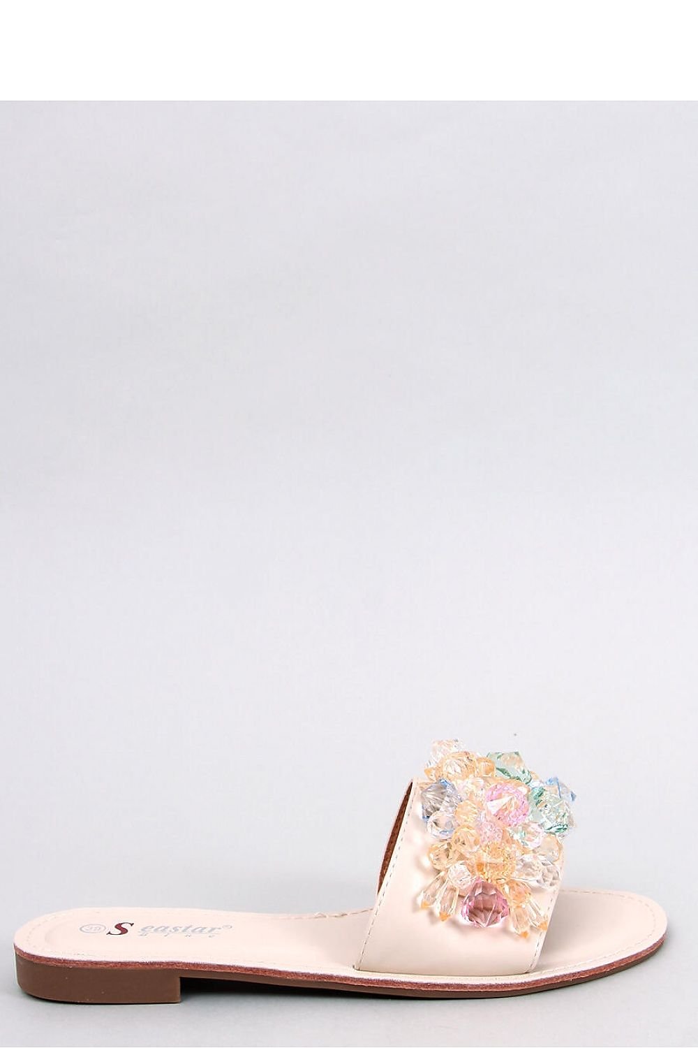 Women's flip-flops with a flat heel. The wide strap decorated with colorful and sparkling stones is eye-catching : ) Wow effect guaranteed! Give them a chance to conquer your wardrobe and you won't regret it.... Outer material? Eco-leather.