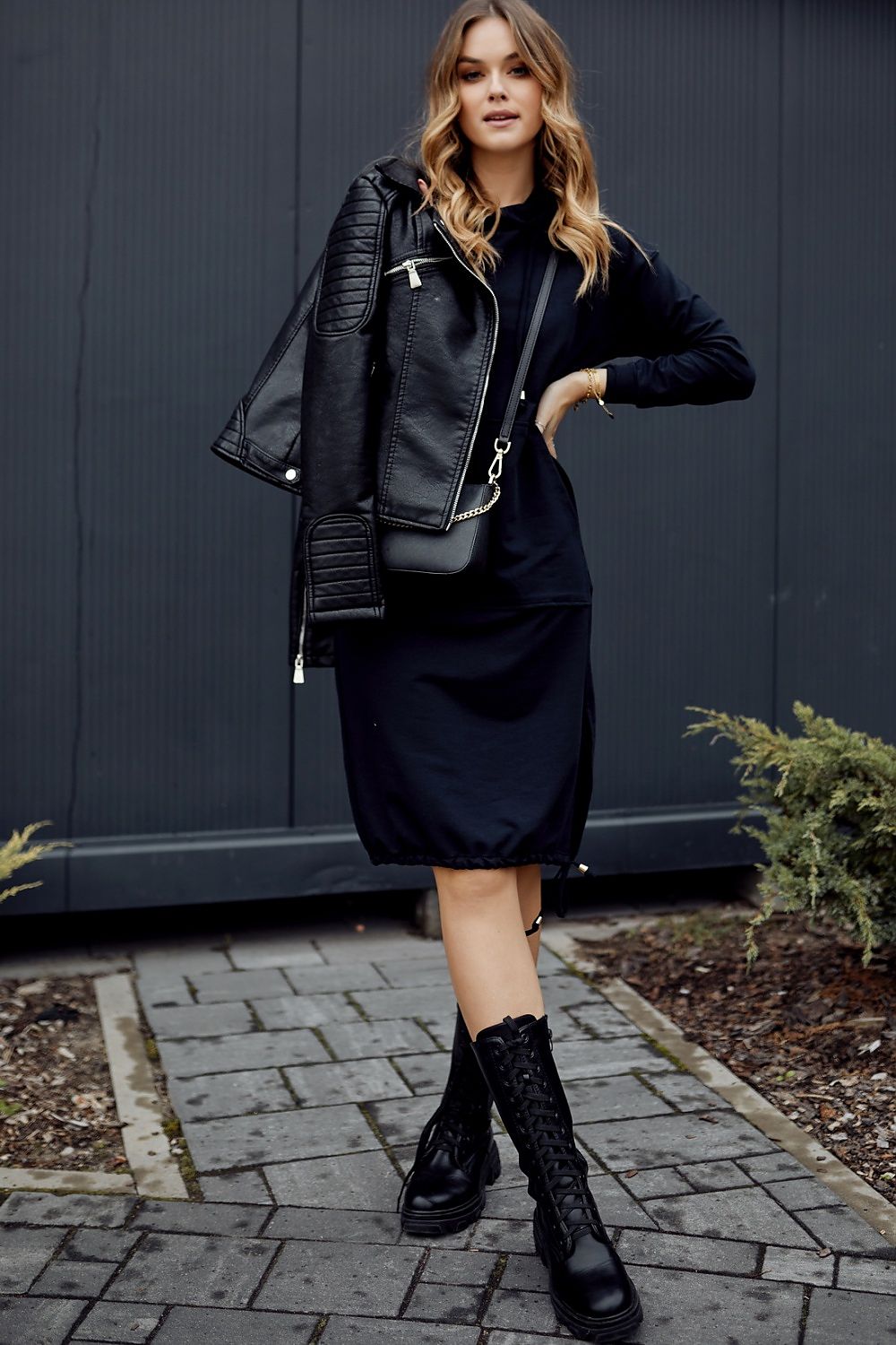 Do you like casual, comfortable, and sporty looks? The navy hoodie dress is a more comfortable alternative for many everyday looks. This long-sleeved dress features a kangaroo pocket. The bottom of the dress features a zipper and a tie closure.