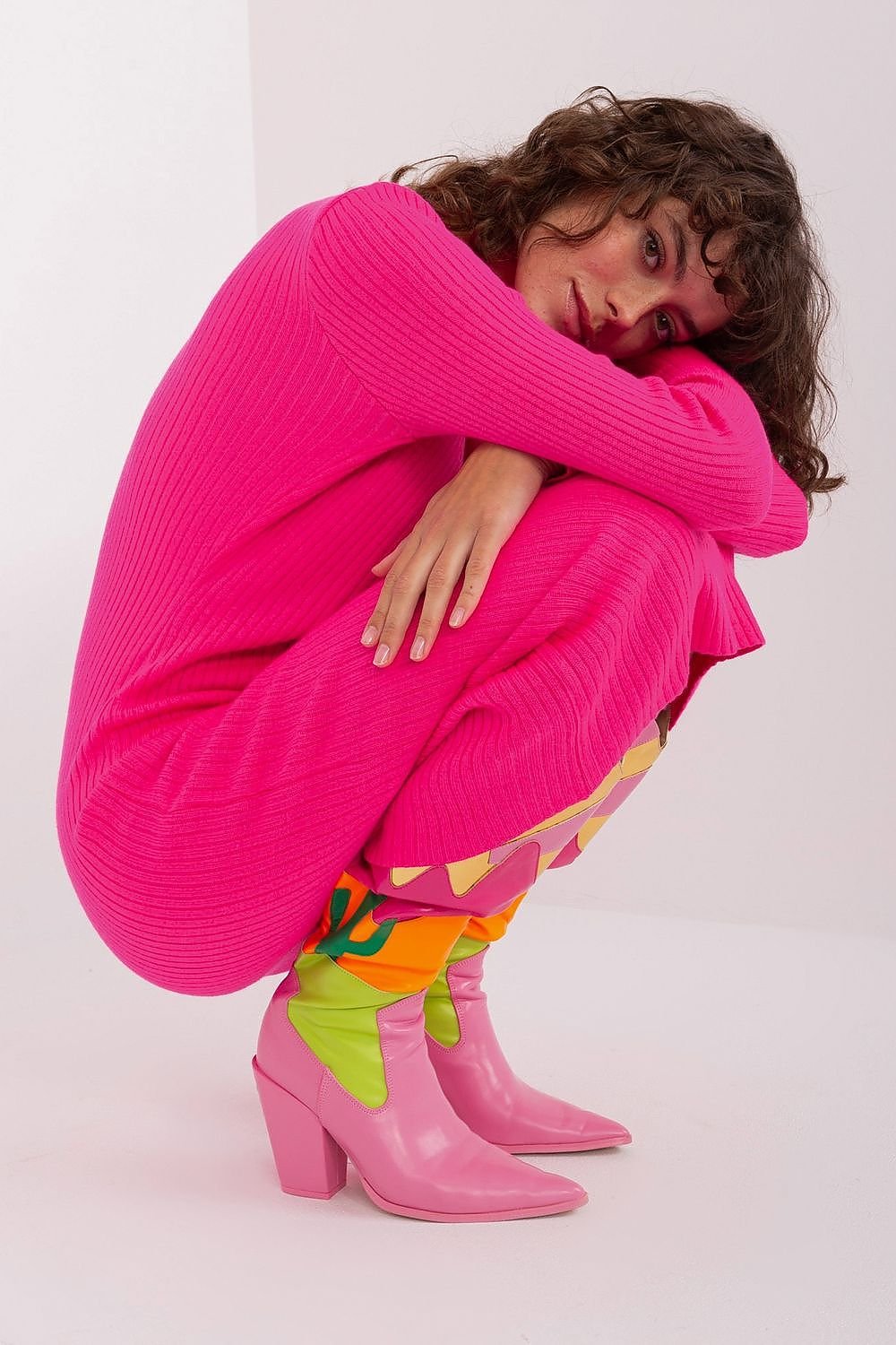 This dress is the perfect option for women who appreciate casual style with a touch of elegance. The long sleeves and the varied texture of the striped fabric give the dress a unique character. Made of soft acrylic, it guarantees comfort and excellent thermal insulation. The midi length gives the dress great versatility, allowing it to be worn both everyday and for work. The round neckline adds delicacy and subtlety, emphasizing feminine beauty. The lack of closure makes the dress easy to wear, while its minimalist design gives it a modern touch. It is the ideal choice for women who want to be elegant while remaining casual and comfortable to wear.
