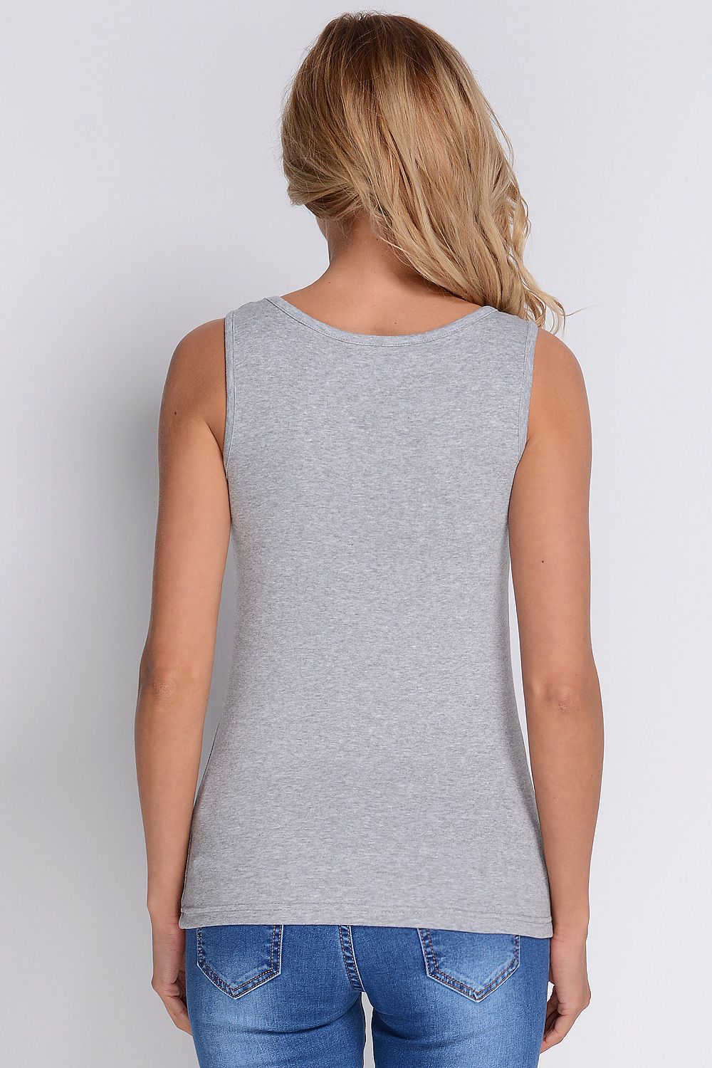 Comfortable, sleeveless blouse with off-the-shoulder detailing. The stretchy cotton fabric is pleasant to the touch and fits the figure well. The blouse is made of slightly ribbed cotton knit. A very neat design. Airy and very comfortable, it perfectly highlights feminine curves.