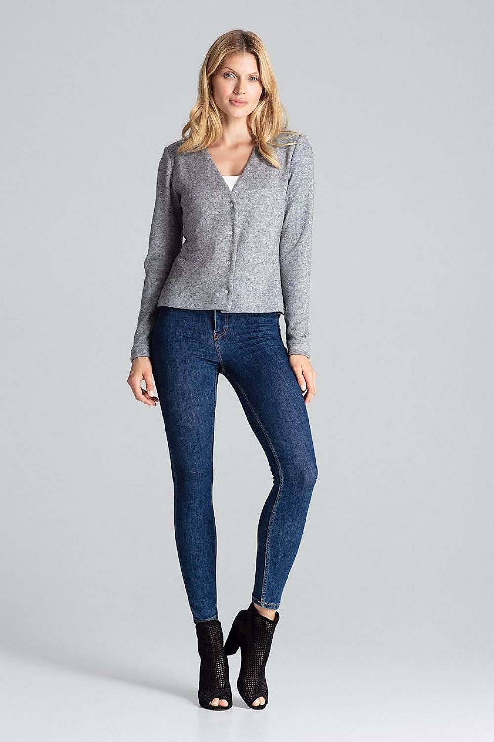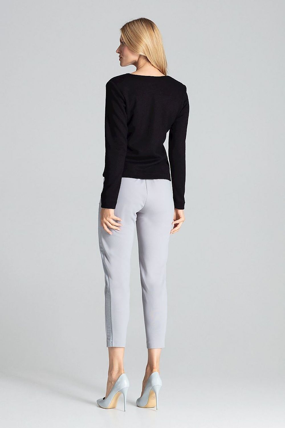 Pull noir classique et simple avec des manches longues et une encolure en forme de cœur. Fermé par des boutons pression décoratifs imitant la nacre.