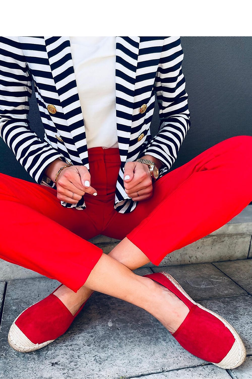 Espadrilles pour femmes sur une semelle plate. Ce sont les chaussures parfaites pour les amateurs de solutions à la mode qui fonctionnent dans toutes les situations ! Leur design classique est mis en valeur par une finition chatoyante, qui leur confère un caractère unique. Elles sont fabriquées en daim écologique et l'intérieur est doublé de tissu.